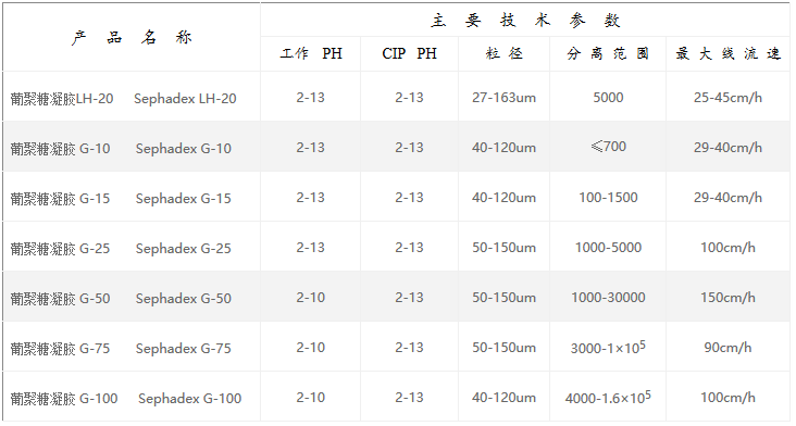 Sepandex G葡聚糖凝胶不同的交联度,它们的溶胀和分级分离范围也有所不同。